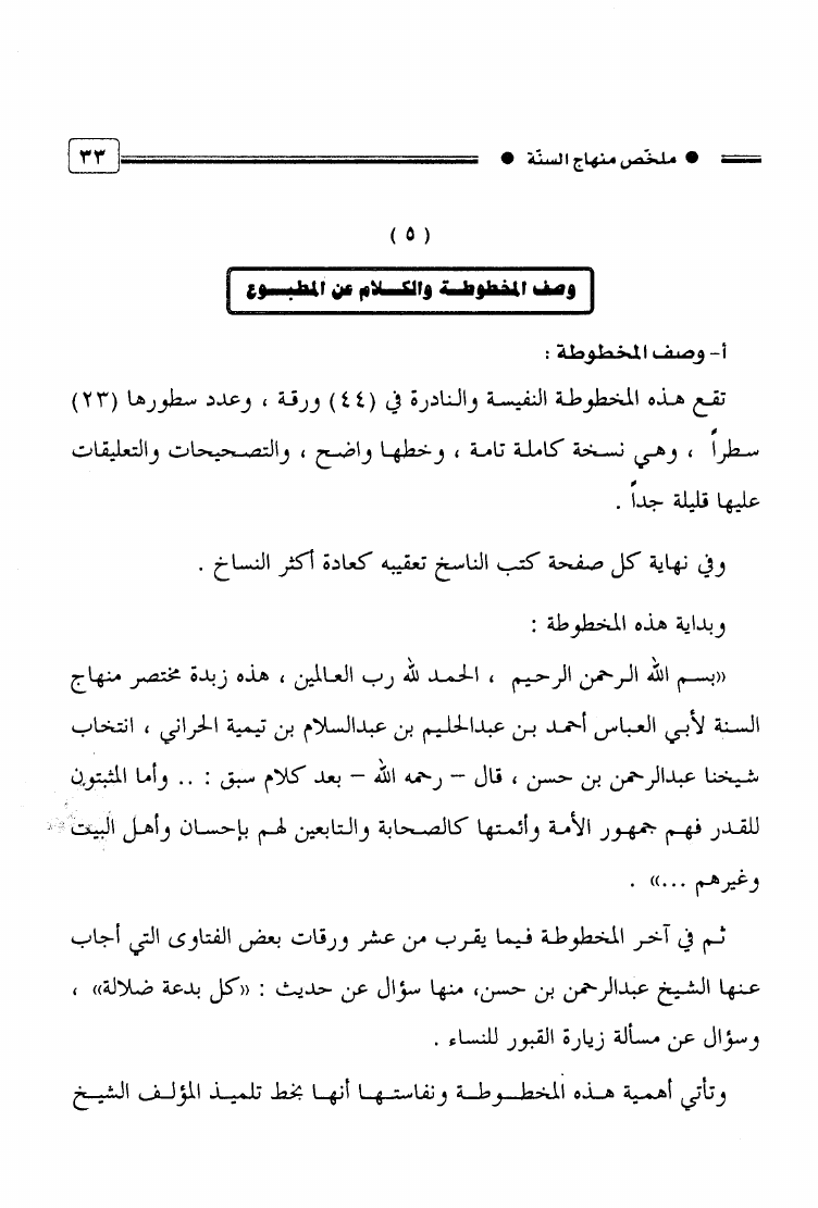 ملخص منهاج السنة ويليه فتاوى للشيخ عبد الرحمن بن حسن