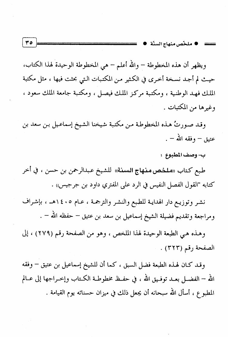 ملخص منهاج السنة ويليه فتاوى للشيخ عبد الرحمن بن حسن