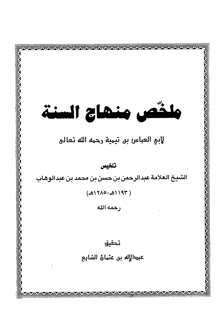 ملخص منهاج السنة ويليه فتاوى للشيخ عبد الرحمن بن حسن