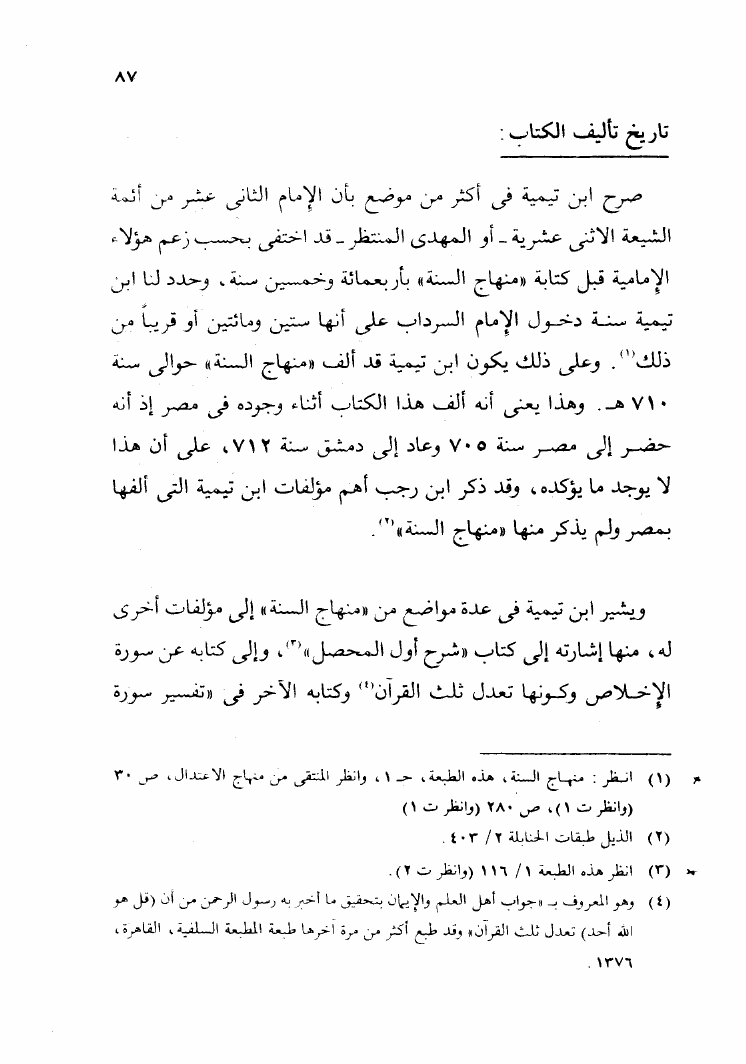 منهاج السنة النبوية في نقض كلام الشيعة القدرية