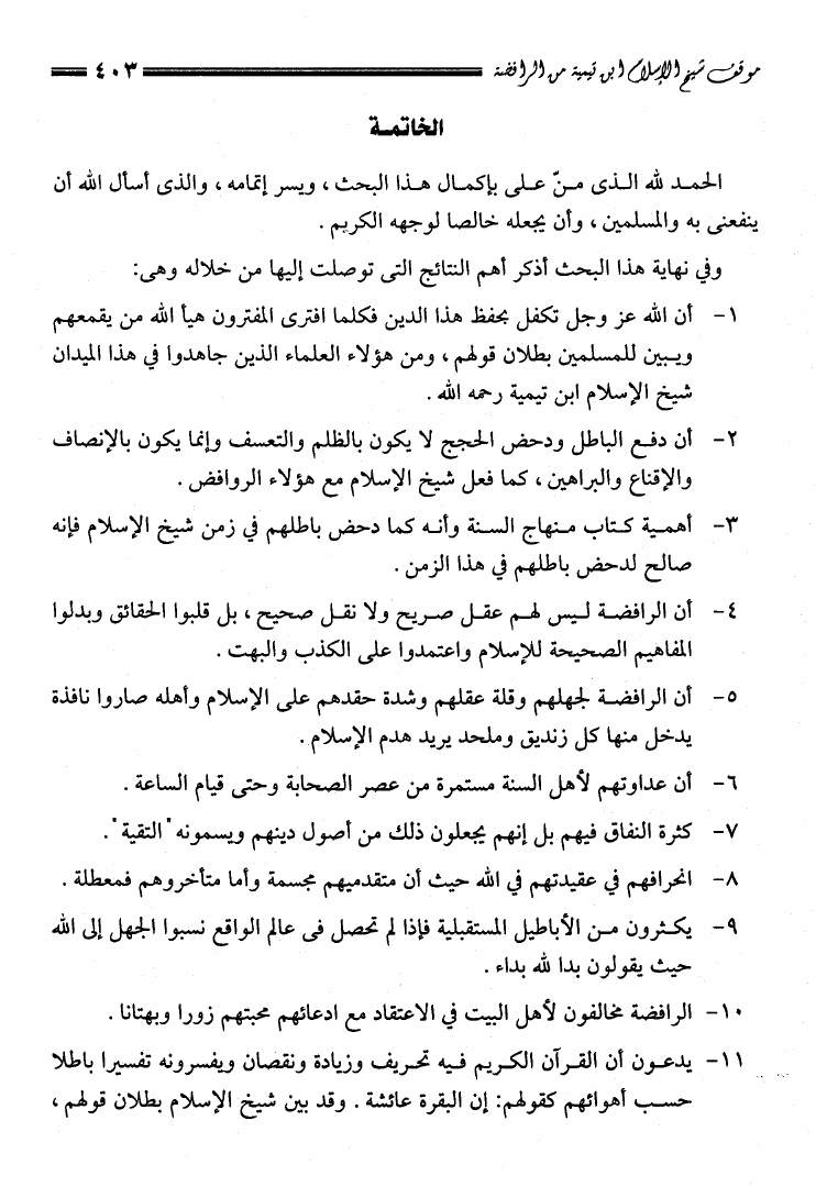 موقف شيخ الإسلام ابن تيمية من الرافضة