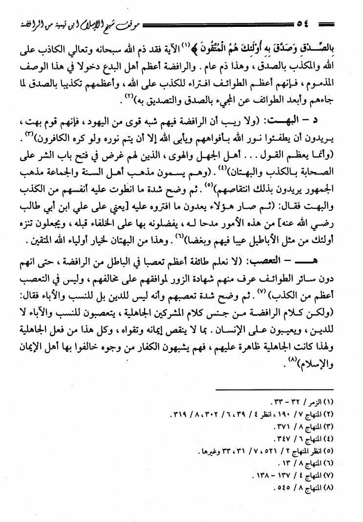موقف شيخ الإسلام ابن تيمية من الرافضة