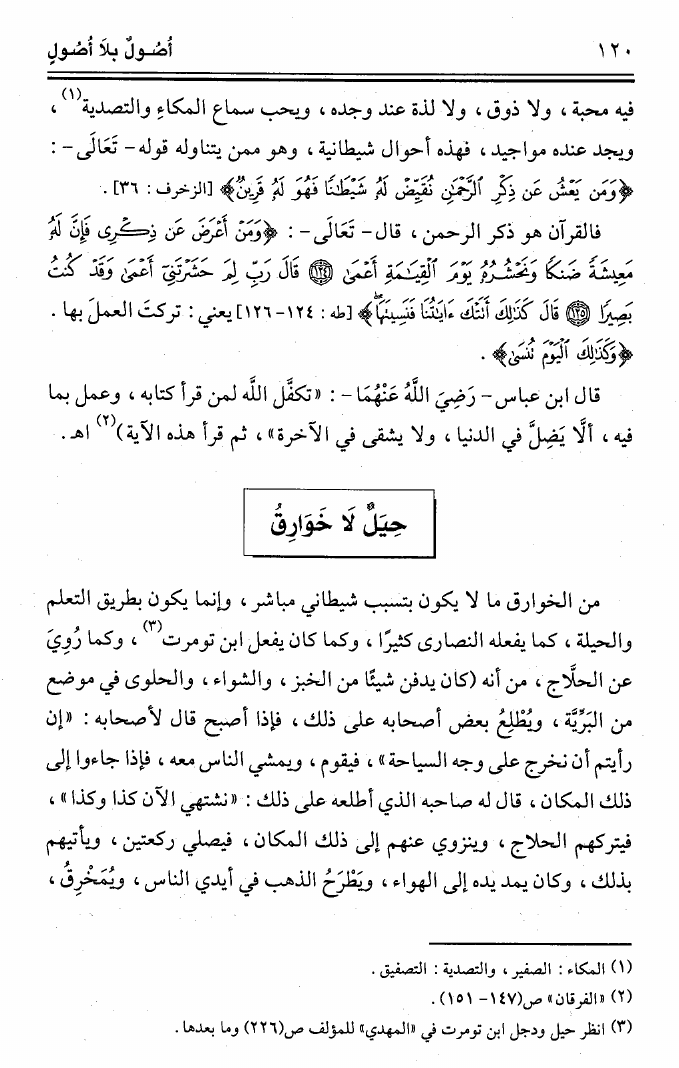 نام کتاب : أصول بلا أصول: بحث وافي في رد عدوان الصوفية ومدعي المهدية على مصادر التلقي والمرجعية الشرعية نویسنده : محمد بن أحمد إسماعيل المقدم جلد : 1 صفحه : 120