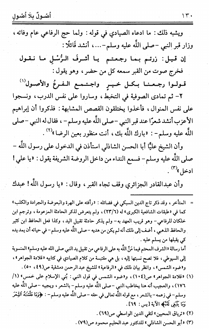 نام کتاب : أصول بلا أصول: بحث وافي في رد عدوان الصوفية ومدعي المهدية على مصادر التلقي والمرجعية الشرعية نویسنده : محمد بن أحمد إسماعيل المقدم جلد : 1 صفحه : 130