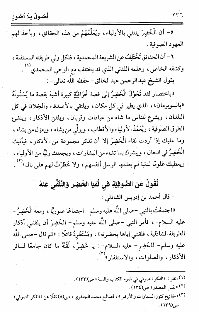 نام کتاب : أصول بلا أصول: بحث وافي في رد عدوان الصوفية ومدعي المهدية على مصادر التلقي والمرجعية الشرعية نویسنده : محمد بن أحمد إسماعيل المقدم جلد : 1 صفحه : 236