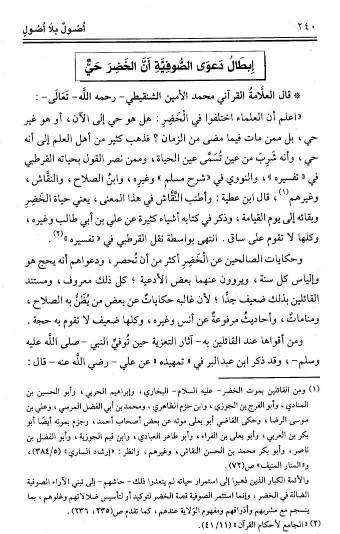 نام کتاب : أصول بلا أصول: بحث وافي في رد عدوان الصوفية ومدعي المهدية على مصادر التلقي والمرجعية الشرعية نویسنده : محمد بن أحمد إسماعيل المقدم جلد : 1 صفحه : 240