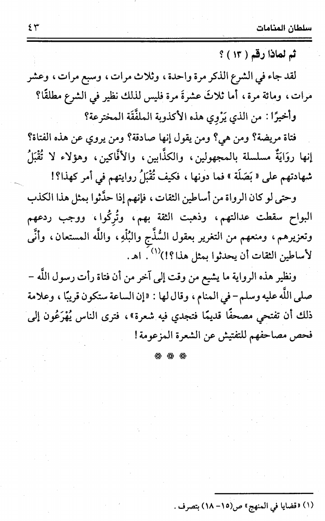 نام کتاب : أصول بلا أصول: بحث وافي في رد عدوان الصوفية ومدعي المهدية على مصادر التلقي والمرجعية الشرعية نویسنده : محمد بن أحمد إسماعيل المقدم جلد : 1 صفحه : 43