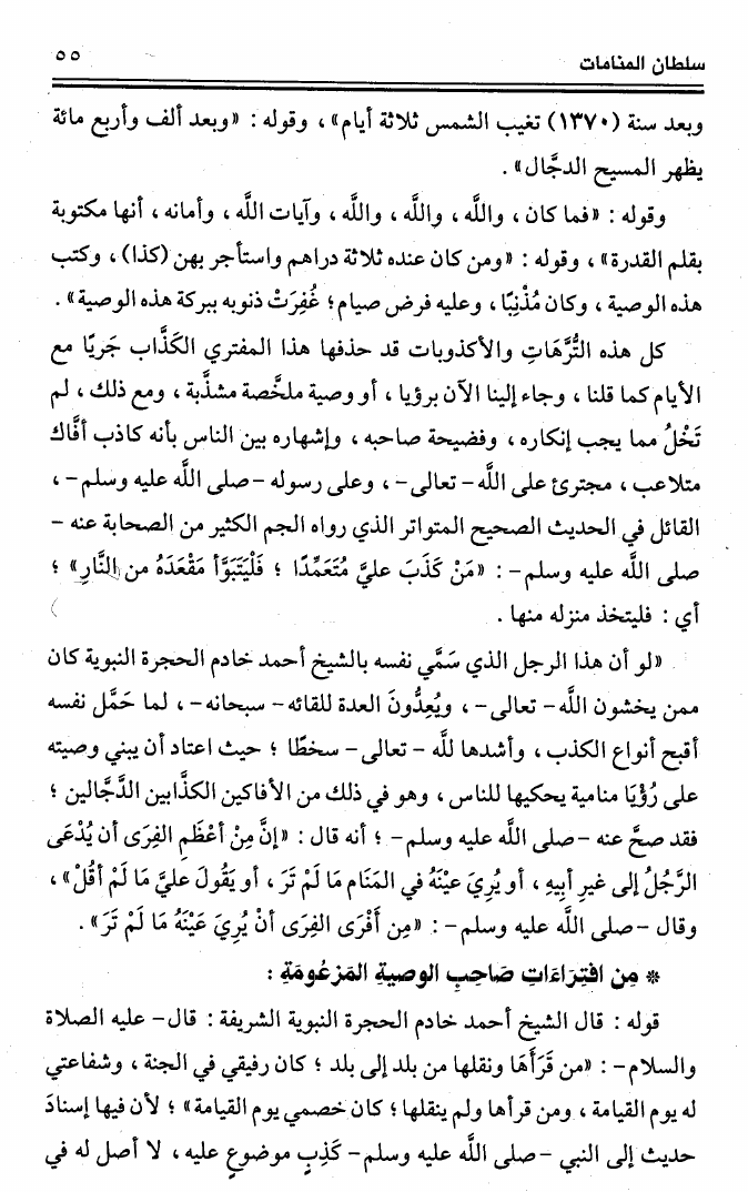 نام کتاب : أصول بلا أصول: بحث وافي في رد عدوان الصوفية ومدعي المهدية على مصادر التلقي والمرجعية الشرعية نویسنده : محمد بن أحمد إسماعيل المقدم جلد : 1 صفحه : 55