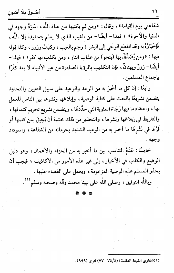 نام کتاب : أصول بلا أصول: بحث وافي في رد عدوان الصوفية ومدعي المهدية على مصادر التلقي والمرجعية الشرعية نویسنده : محمد بن أحمد إسماعيل المقدم جلد : 1 صفحه : 62