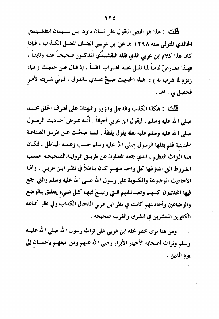 نام کتاب : الرد الأوفر على فقه الشيخ الأكبر ويليه إتمام البحث والرد على الإنسان الكامل والقطب الغوث الفرد نویسنده : عبد القادر بن حبيب الله السندي جلد : 1 صفحه : 124