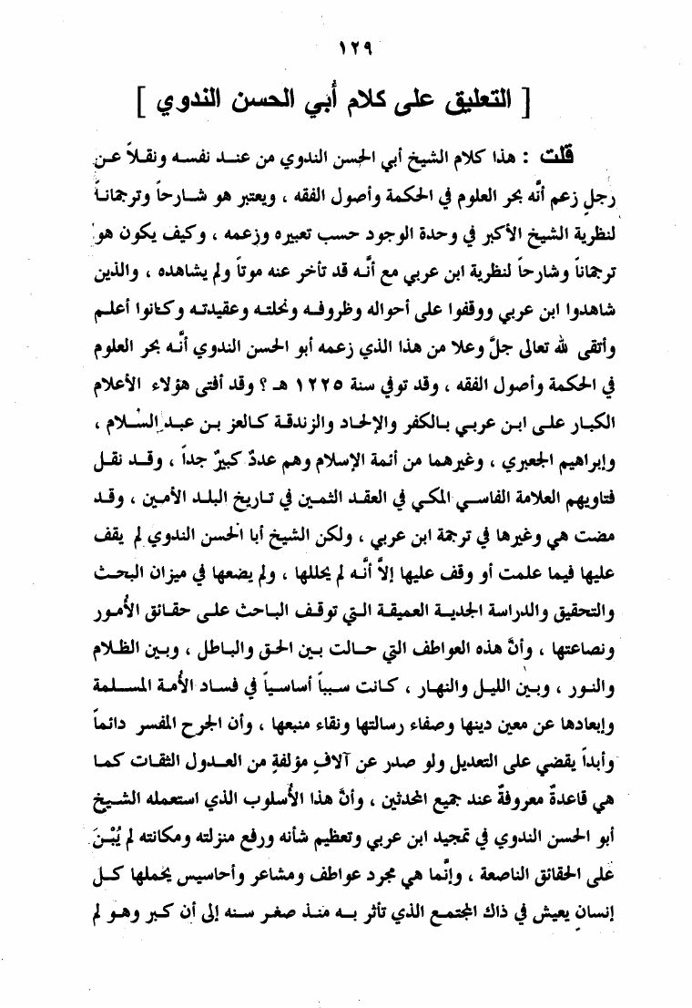 نام کتاب : الرد الأوفر على فقه الشيخ الأكبر ويليه إتمام البحث والرد على الإنسان الكامل والقطب الغوث الفرد نویسنده : عبد القادر بن حبيب الله السندي جلد : 1 صفحه : 129