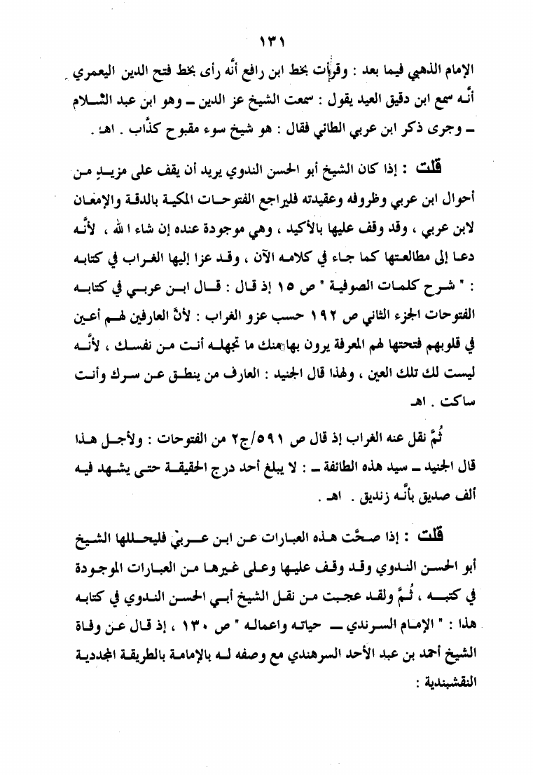 نام کتاب : الرد الأوفر على فقه الشيخ الأكبر ويليه إتمام البحث والرد على الإنسان الكامل والقطب الغوث الفرد نویسنده : عبد القادر بن حبيب الله السندي جلد : 1 صفحه : 131