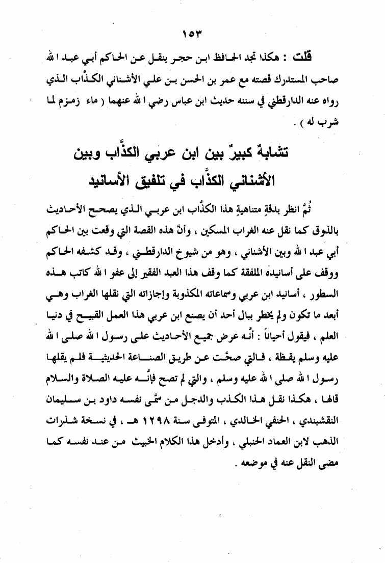نام کتاب : الرد الأوفر على فقه الشيخ الأكبر ويليه إتمام البحث والرد على الإنسان الكامل والقطب الغوث الفرد نویسنده : عبد القادر بن حبيب الله السندي جلد : 1 صفحه : 153
