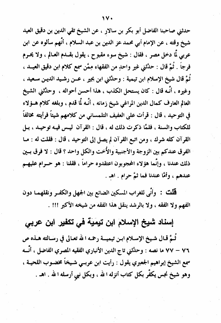 نام کتاب : الرد الأوفر على فقه الشيخ الأكبر ويليه إتمام البحث والرد على الإنسان الكامل والقطب الغوث الفرد نویسنده : عبد القادر بن حبيب الله السندي جلد : 1 صفحه : 170