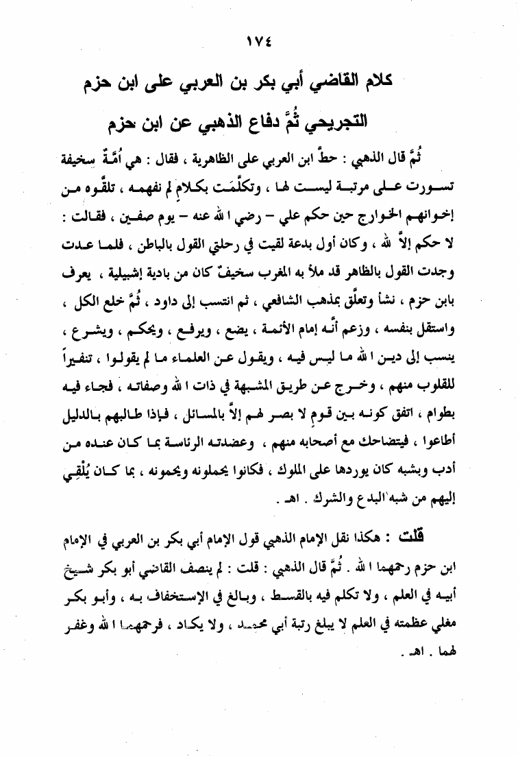 نام کتاب : الرد الأوفر على فقه الشيخ الأكبر ويليه إتمام البحث والرد على الإنسان الكامل والقطب الغوث الفرد نویسنده : عبد القادر بن حبيب الله السندي جلد : 1 صفحه : 174