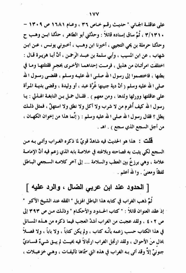 نام کتاب : الرد الأوفر على فقه الشيخ الأكبر ويليه إتمام البحث والرد على الإنسان الكامل والقطب الغوث الفرد نویسنده : عبد القادر بن حبيب الله السندي جلد : 1 صفحه : 177