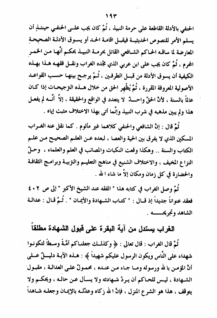 نام کتاب : الرد الأوفر على فقه الشيخ الأكبر ويليه إتمام البحث والرد على الإنسان الكامل والقطب الغوث الفرد نویسنده : عبد القادر بن حبيب الله السندي جلد : 1 صفحه : 193