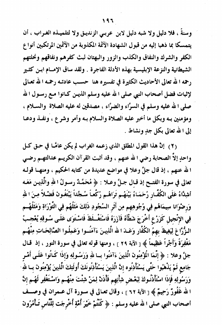 نام کتاب : الرد الأوفر على فقه الشيخ الأكبر ويليه إتمام البحث والرد على الإنسان الكامل والقطب الغوث الفرد نویسنده : عبد القادر بن حبيب الله السندي جلد : 1 صفحه : 196