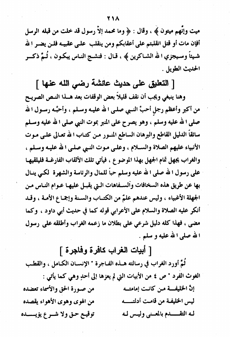 نام کتاب : الرد الأوفر على فقه الشيخ الأكبر ويليه إتمام البحث والرد على الإنسان الكامل والقطب الغوث الفرد نویسنده : عبد القادر بن حبيب الله السندي جلد : 1 صفحه : 218