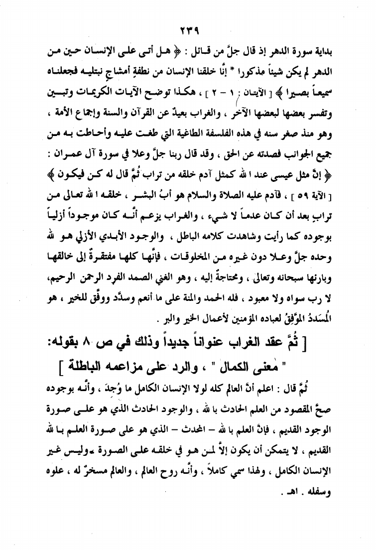 نام کتاب : الرد الأوفر على فقه الشيخ الأكبر ويليه إتمام البحث والرد على الإنسان الكامل والقطب الغوث الفرد نویسنده : عبد القادر بن حبيب الله السندي جلد : 1 صفحه : 239