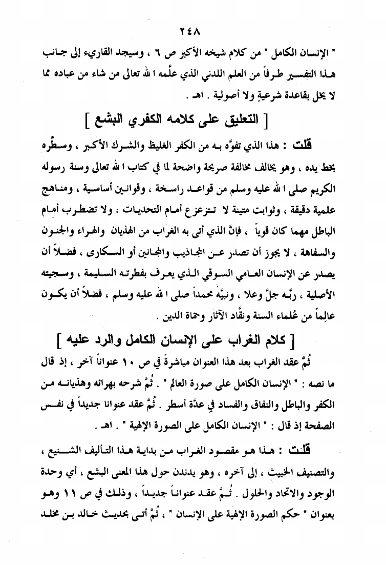 نام کتاب : الرد الأوفر على فقه الشيخ الأكبر ويليه إتمام البحث والرد على الإنسان الكامل والقطب الغوث الفرد نویسنده : عبد القادر بن حبيب الله السندي جلد : 1 صفحه : 248
