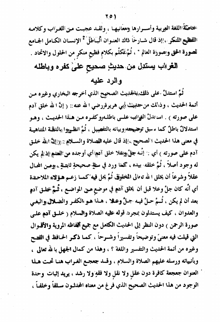 نام کتاب : الرد الأوفر على فقه الشيخ الأكبر ويليه إتمام البحث والرد على الإنسان الكامل والقطب الغوث الفرد نویسنده : عبد القادر بن حبيب الله السندي جلد : 1 صفحه : 251