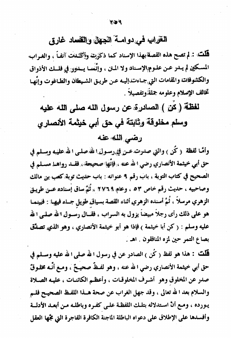 نام کتاب : الرد الأوفر على فقه الشيخ الأكبر ويليه إتمام البحث والرد على الإنسان الكامل والقطب الغوث الفرد نویسنده : عبد القادر بن حبيب الله السندي جلد : 1 صفحه : 259