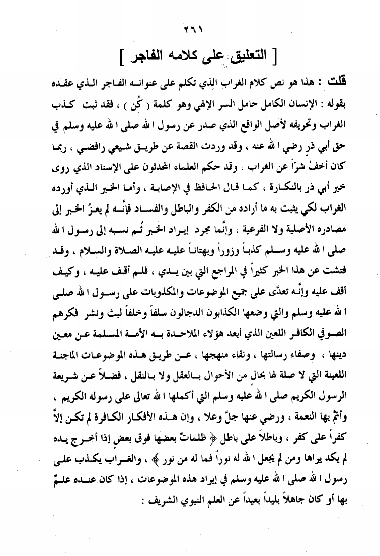 نام کتاب : الرد الأوفر على فقه الشيخ الأكبر ويليه إتمام البحث والرد على الإنسان الكامل والقطب الغوث الفرد نویسنده : عبد القادر بن حبيب الله السندي جلد : 1 صفحه : 261