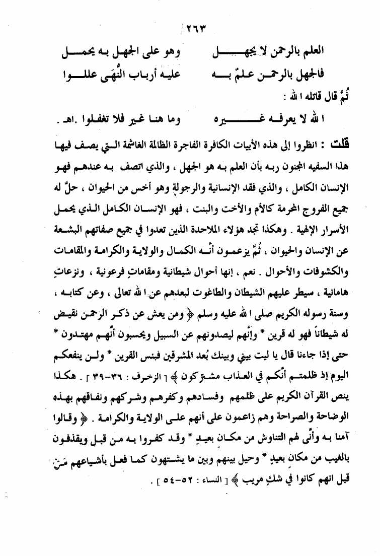 نام کتاب : الرد الأوفر على فقه الشيخ الأكبر ويليه إتمام البحث والرد على الإنسان الكامل والقطب الغوث الفرد نویسنده : عبد القادر بن حبيب الله السندي جلد : 1 صفحه : 263