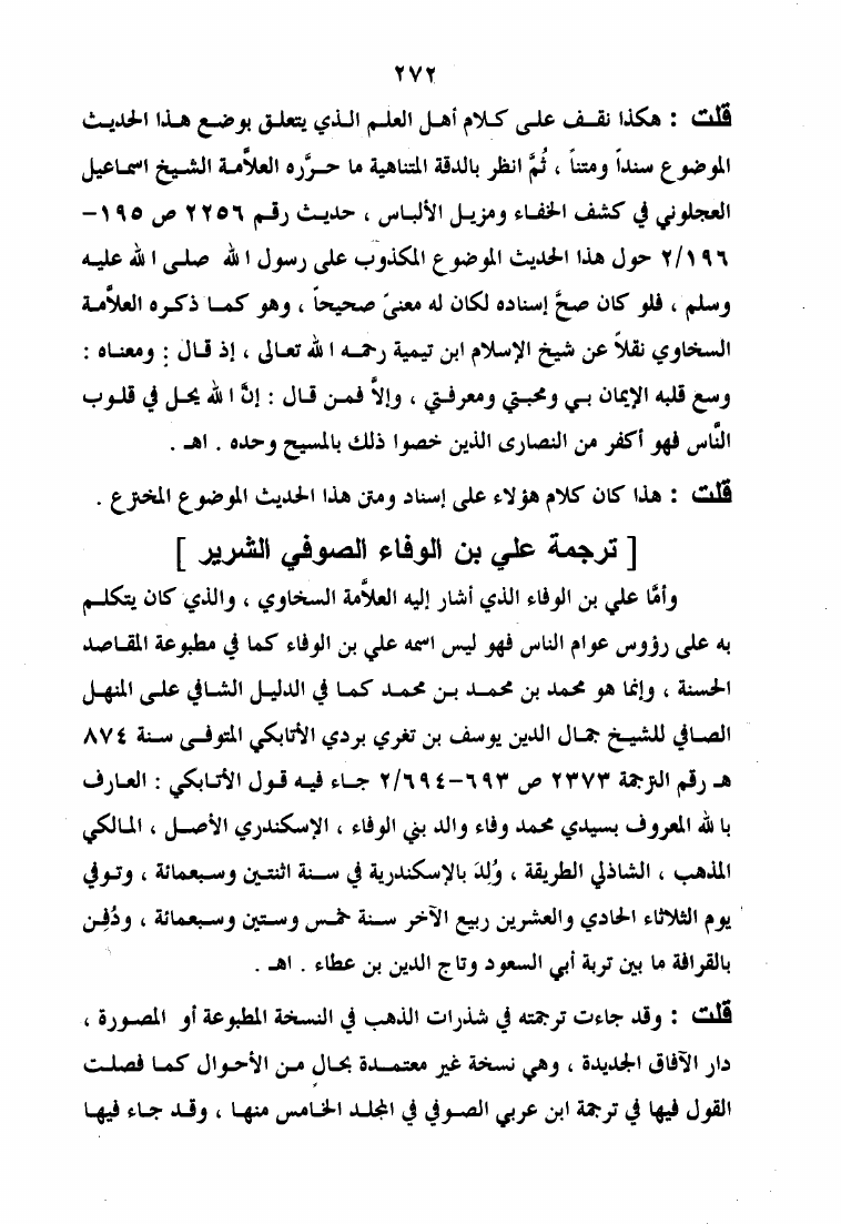 نام کتاب : الرد الأوفر على فقه الشيخ الأكبر ويليه إتمام البحث والرد على الإنسان الكامل والقطب الغوث الفرد نویسنده : عبد القادر بن حبيب الله السندي جلد : 1 صفحه : 272