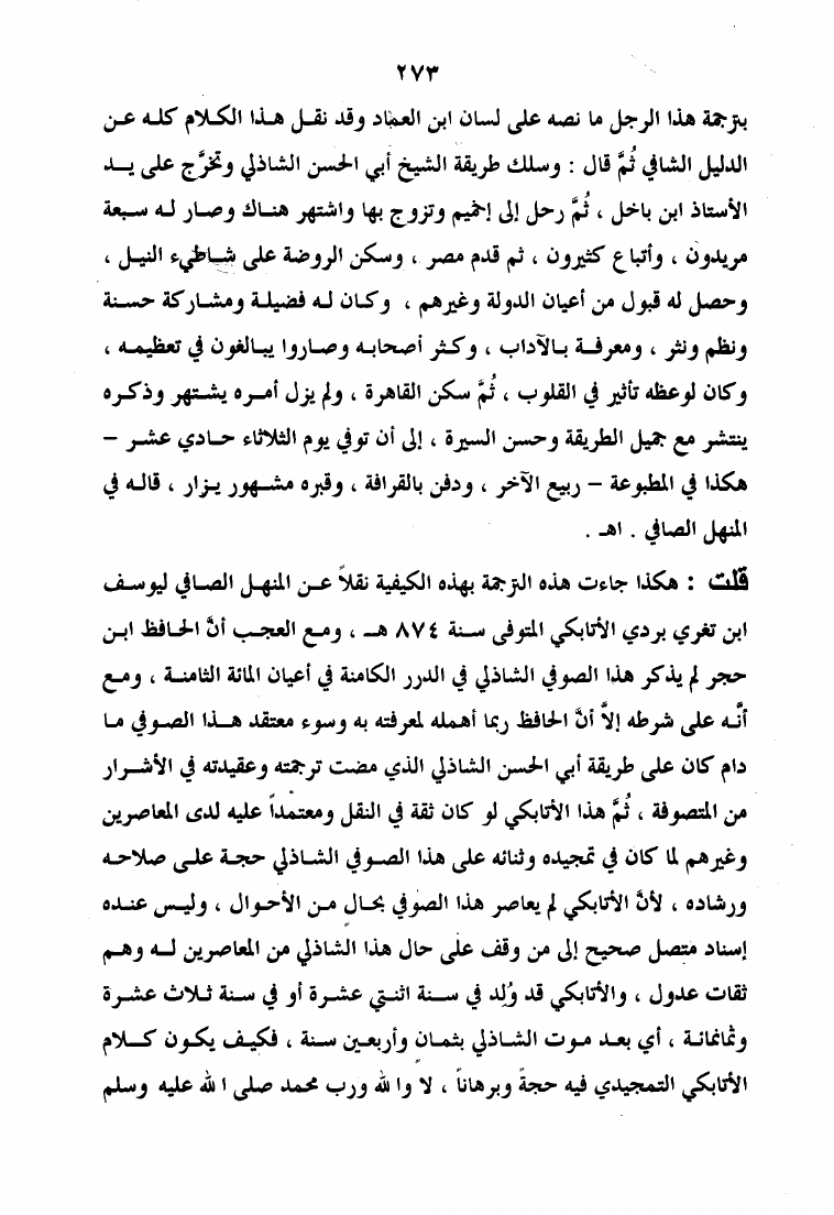 نام کتاب : الرد الأوفر على فقه الشيخ الأكبر ويليه إتمام البحث والرد على الإنسان الكامل والقطب الغوث الفرد نویسنده : عبد القادر بن حبيب الله السندي جلد : 1 صفحه : 273