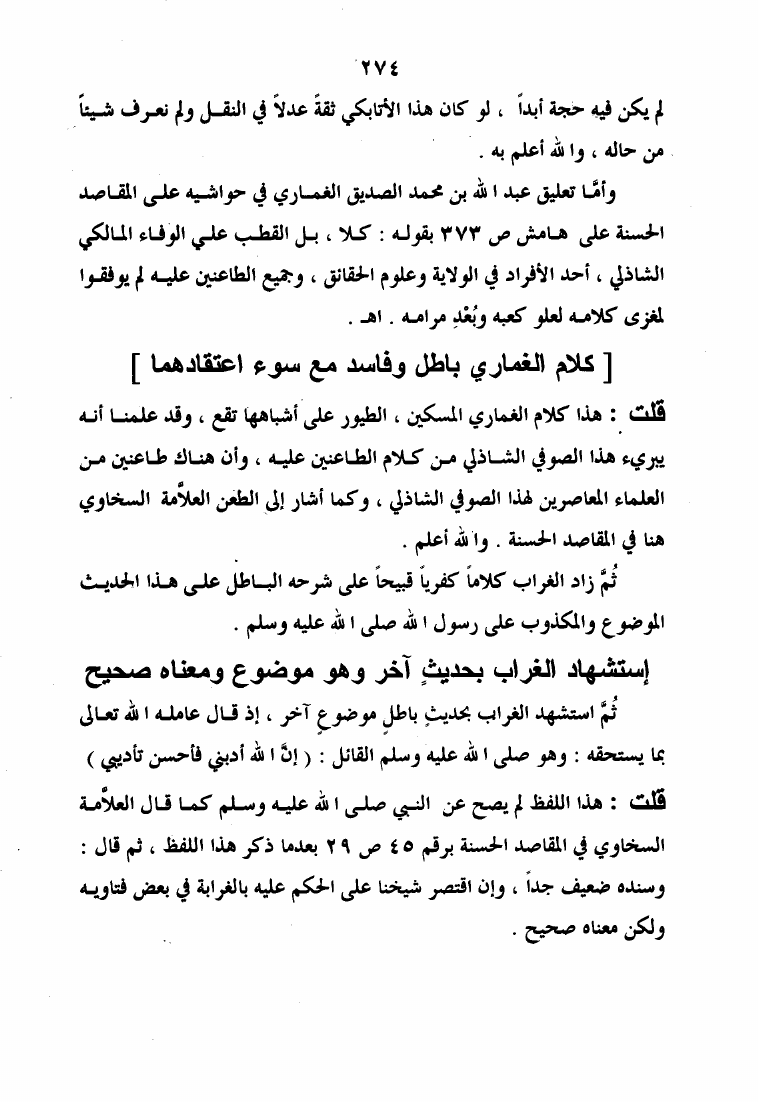 نام کتاب : الرد الأوفر على فقه الشيخ الأكبر ويليه إتمام البحث والرد على الإنسان الكامل والقطب الغوث الفرد نویسنده : عبد القادر بن حبيب الله السندي جلد : 1 صفحه : 274