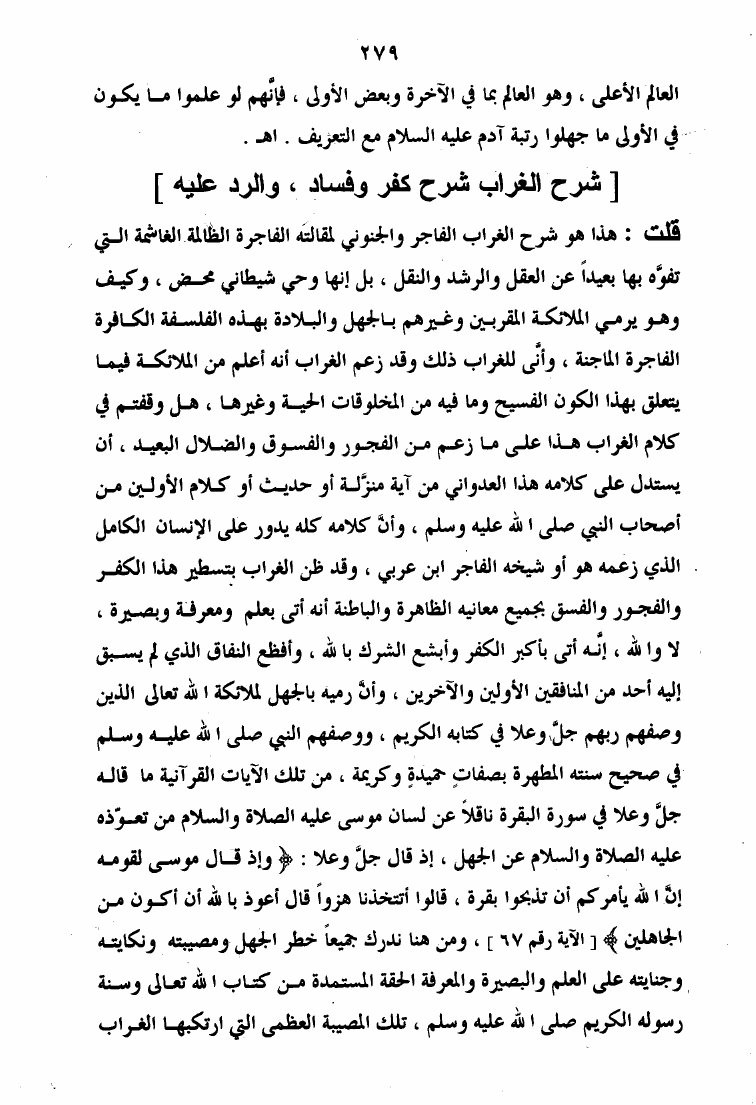 نام کتاب : الرد الأوفر على فقه الشيخ الأكبر ويليه إتمام البحث والرد على الإنسان الكامل والقطب الغوث الفرد نویسنده : عبد القادر بن حبيب الله السندي جلد : 1 صفحه : 279