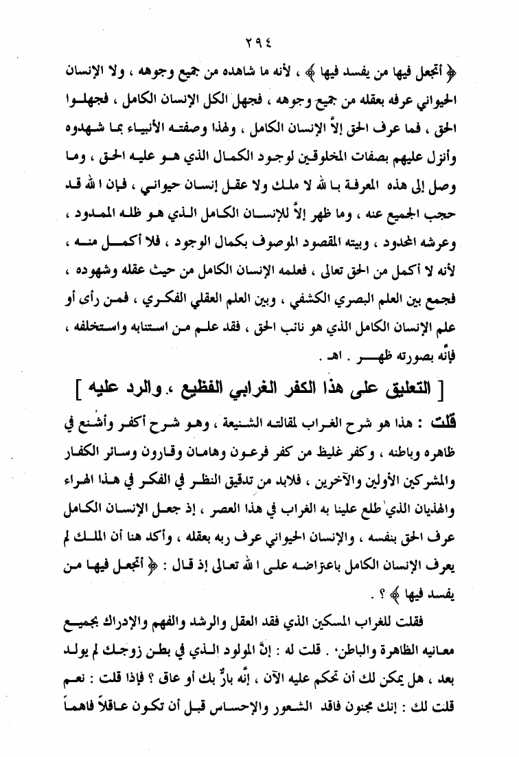 نام کتاب : الرد الأوفر على فقه الشيخ الأكبر ويليه إتمام البحث والرد على الإنسان الكامل والقطب الغوث الفرد نویسنده : عبد القادر بن حبيب الله السندي جلد : 1 صفحه : 294