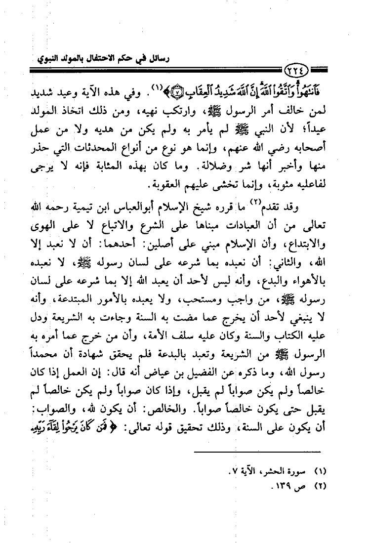 رسائل في حكم الإحتفال بالمولد النبوي