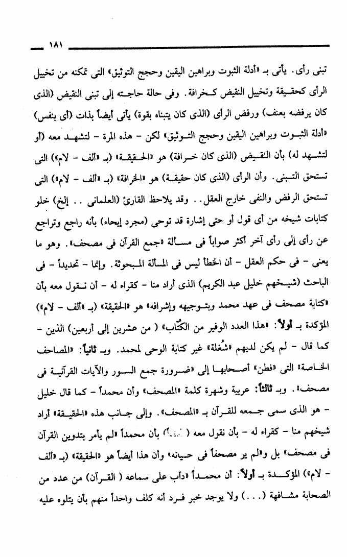 نام کتاب : التنوير بالتزوير مساهمة في نقد علمية الخطاب العلماني الرد على سيد القمني وخليل عبد الكريم ورفعت السعيد نویسنده : منصور أبو شافعي جلد : 1 صفحه : 181