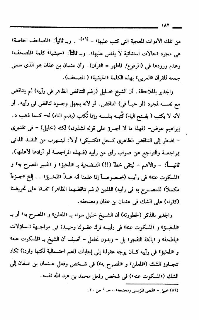 نام کتاب : التنوير بالتزوير مساهمة في نقد علمية الخطاب العلماني الرد على سيد القمني وخليل عبد الكريم ورفعت السعيد نویسنده : منصور أبو شافعي جلد : 1 صفحه : 182