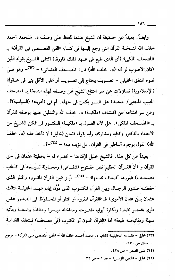 نام کتاب : التنوير بالتزوير مساهمة في نقد علمية الخطاب العلماني الرد على سيد القمني وخليل عبد الكريم ورفعت السعيد نویسنده : منصور أبو شافعي جلد : 1 صفحه : 186