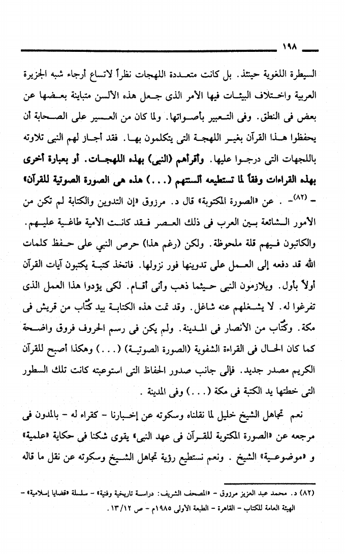 نام کتاب : التنوير بالتزوير مساهمة في نقد علمية الخطاب العلماني الرد على سيد القمني وخليل عبد الكريم ورفعت السعيد نویسنده : منصور أبو شافعي جلد : 1 صفحه : 198