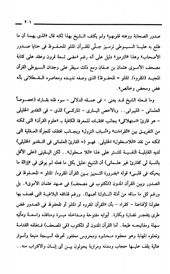 نام کتاب : التنوير بالتزوير مساهمة في نقد علمية الخطاب العلماني الرد على سيد القمني وخليل عبد الكريم ورفعت السعيد نویسنده : منصور أبو شافعي جلد : 1 صفحه : 201