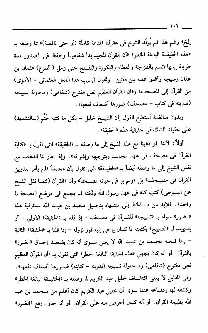 نام کتاب : التنوير بالتزوير مساهمة في نقد علمية الخطاب العلماني الرد على سيد القمني وخليل عبد الكريم ورفعت السعيد نویسنده : منصور أبو شافعي جلد : 1 صفحه : 202