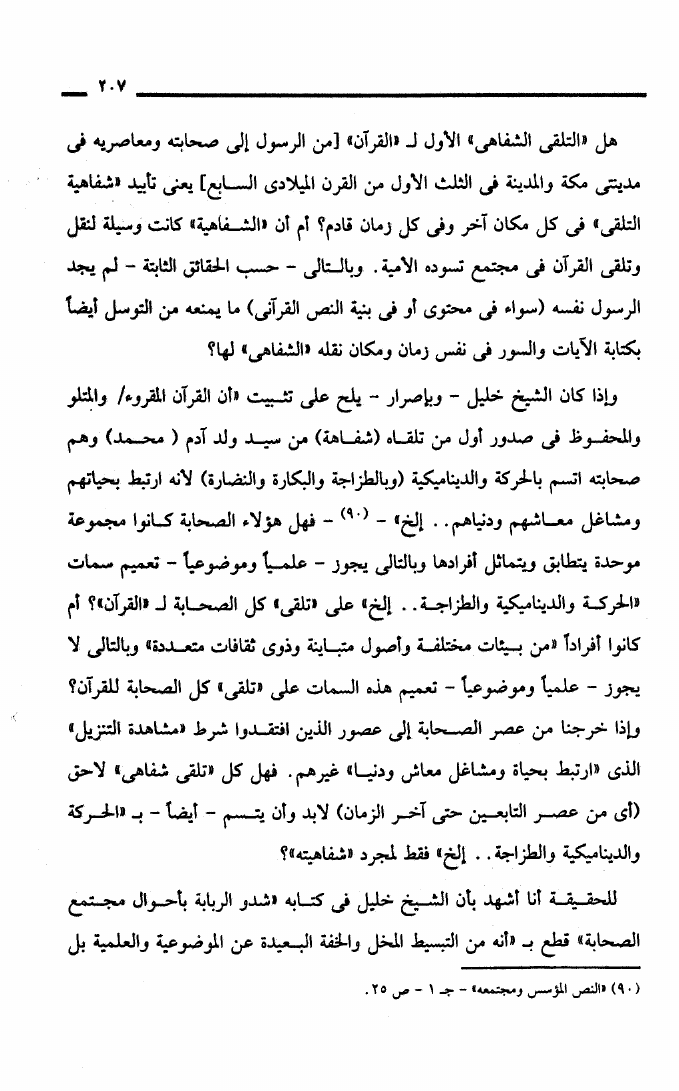 نام کتاب : التنوير بالتزوير مساهمة في نقد علمية الخطاب العلماني الرد على سيد القمني وخليل عبد الكريم ورفعت السعيد نویسنده : منصور أبو شافعي جلد : 1 صفحه : 207