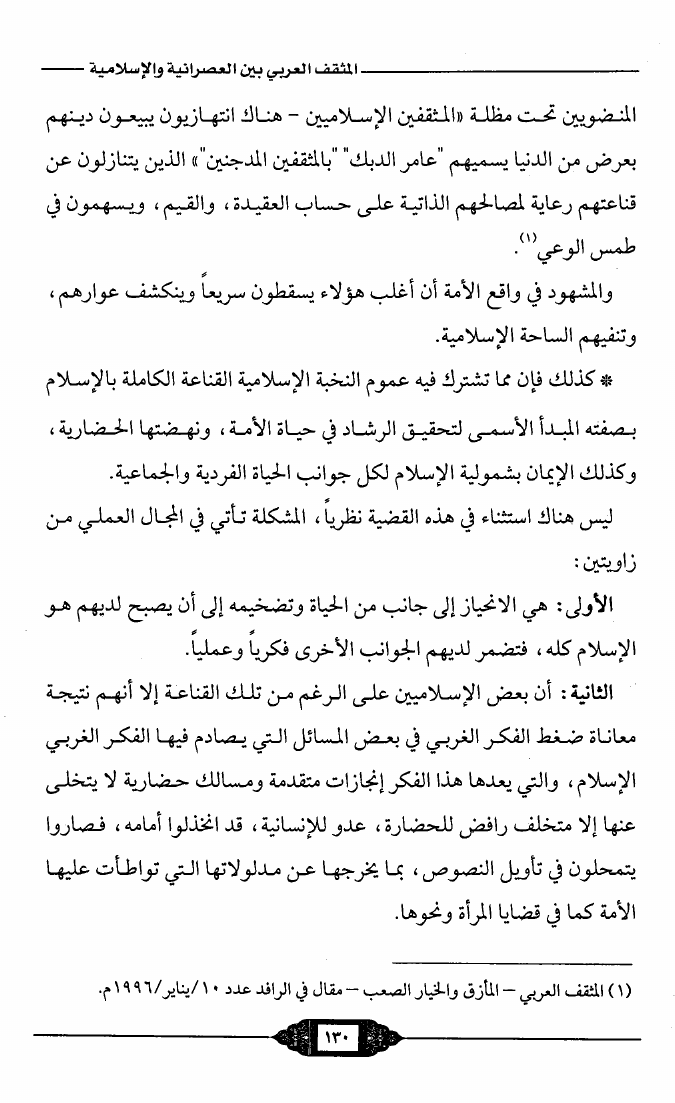 المثقف العربي بين العصرانية والإسلامية
