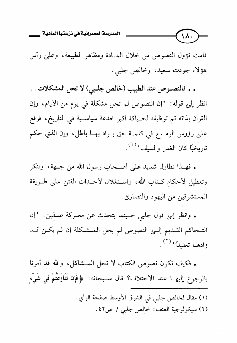 المدرسة العصرانية في نزعتها المادية تعطيل للنصوص وفتنة بالتغريب