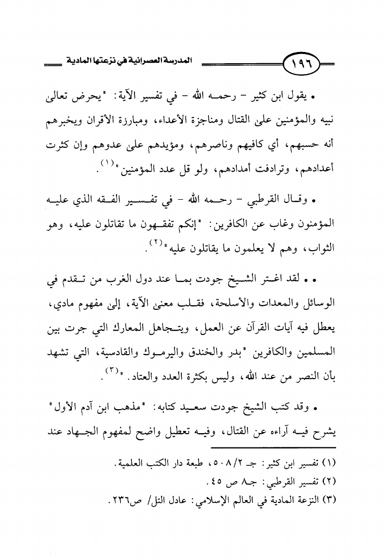 المدرسة العصرانية في نزعتها المادية تعطيل للنصوص وفتنة بالتغريب