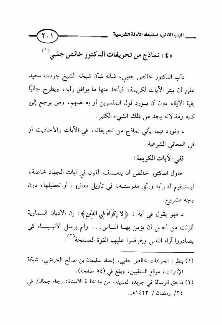 المدرسة العصرانية في نزعتها المادية تعطيل للنصوص وفتنة بالتغريب