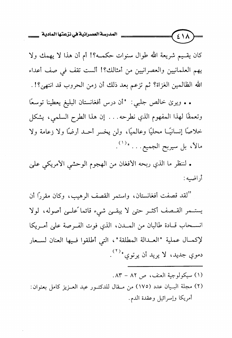 المدرسة العصرانية في نزعتها المادية تعطيل للنصوص وفتنة بالتغريب
