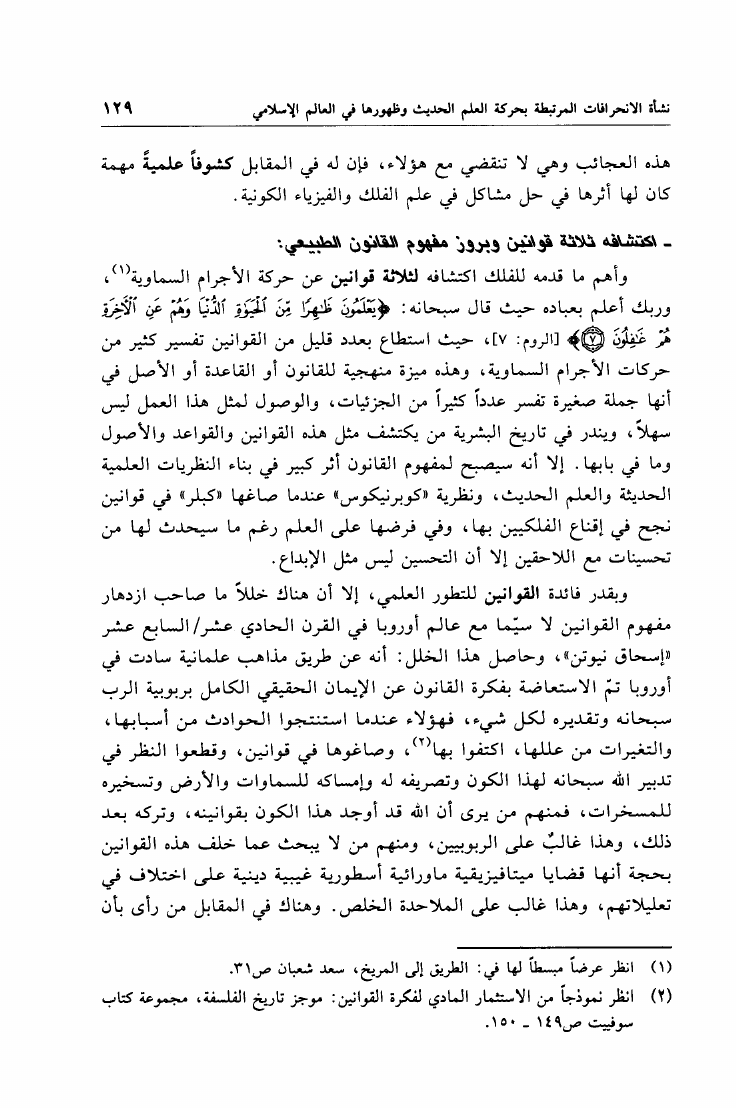نام کتاب : تأثير النظريات العلمية الحديثة مسرتها الفكرية وأسلوب التفكير التغريبي العربي في التعامل معها دراسة نقدية (ط. أوقاف قطر) نویسنده : حسن بن محمد حسن الأسمري جلد : 1 صفحه : 129