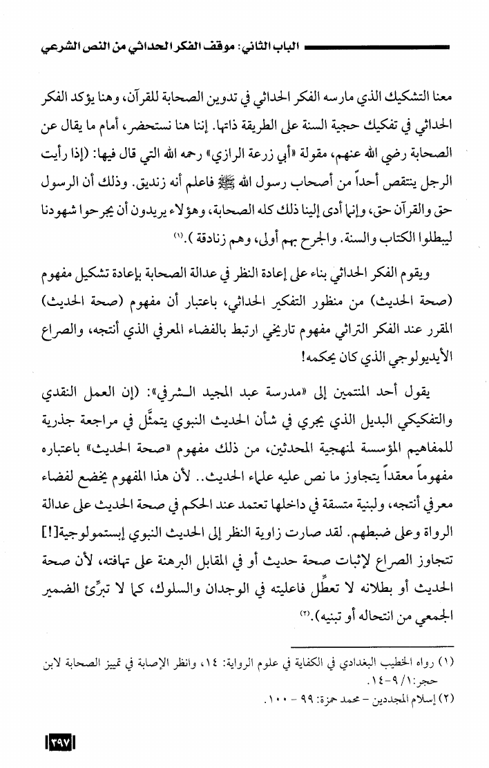 موقف الفكر الحداثي العربي من أصول الإستدلال في الإسلام دراسة تحليلية نقدية