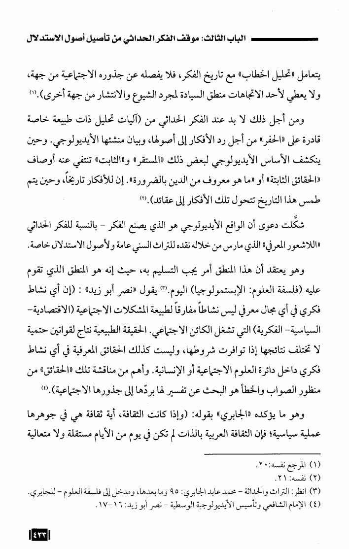 موقف الفكر الحداثي العربي من أصول الإستدلال في الإسلام دراسة تحليلية نقدية